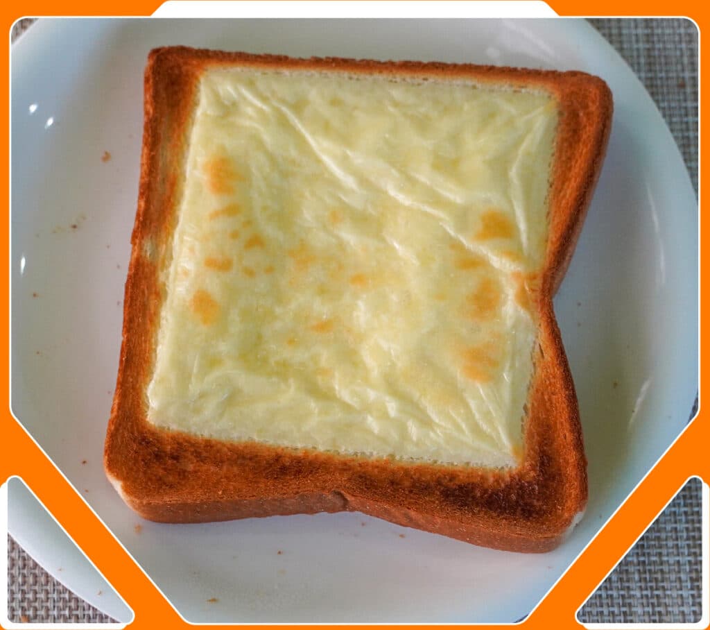 冷凍した食パンも、たった1分時間を延ばすだけで、常温のパンと同じように焼けた。また、チーズはあえて焼き色を濃くしているようで、チーズと一緒に食べるミミまわりの香ばしさが特に美味しいと感じた。