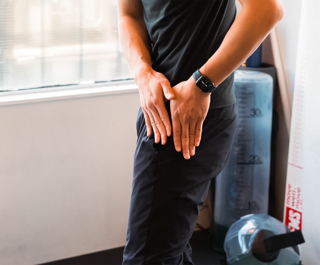 ハムストリングス、内転筋が力を発揮し、大腿四頭筋が緩んでいる状態で呼吸を繰り返す