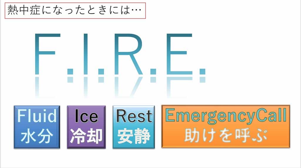 熱中症の応急処置は「FIRE」で決まり