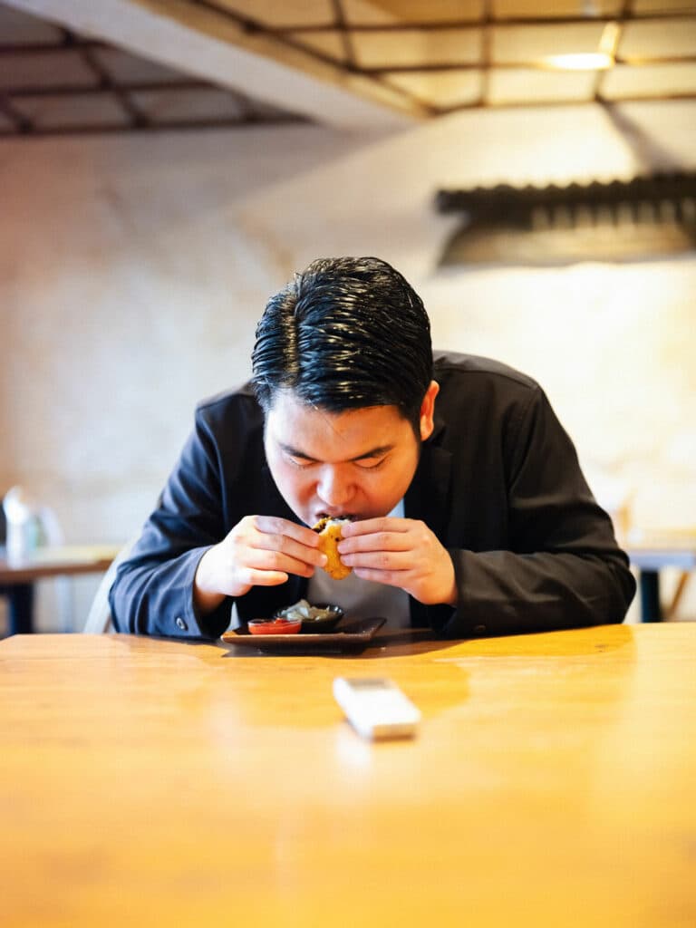 ――サモサができあがったので、いよいよ実食です。3種類ありまして、まずはプレーンから召し上がってください。食べながら普段のYouTube動画の要領で説明をいただければと思います。