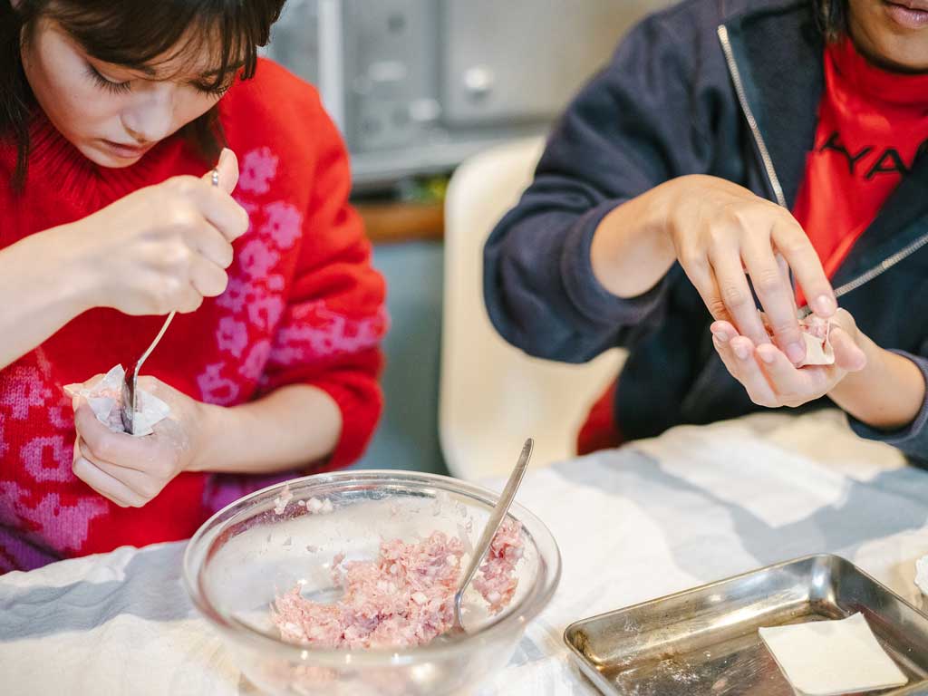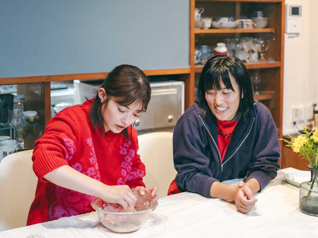 今回は、10年以上親交があるというタレントの井上咲楽さんとフォトグラファーの小林真梨子さんに、シューマイ作りに挑戦してもらった。調理しているあいだも二人のおしゃべりは止まらない。小林さんが住むシェアハウスで、シューマイとともにお互いの心を包んだ、特別な時間の記録。