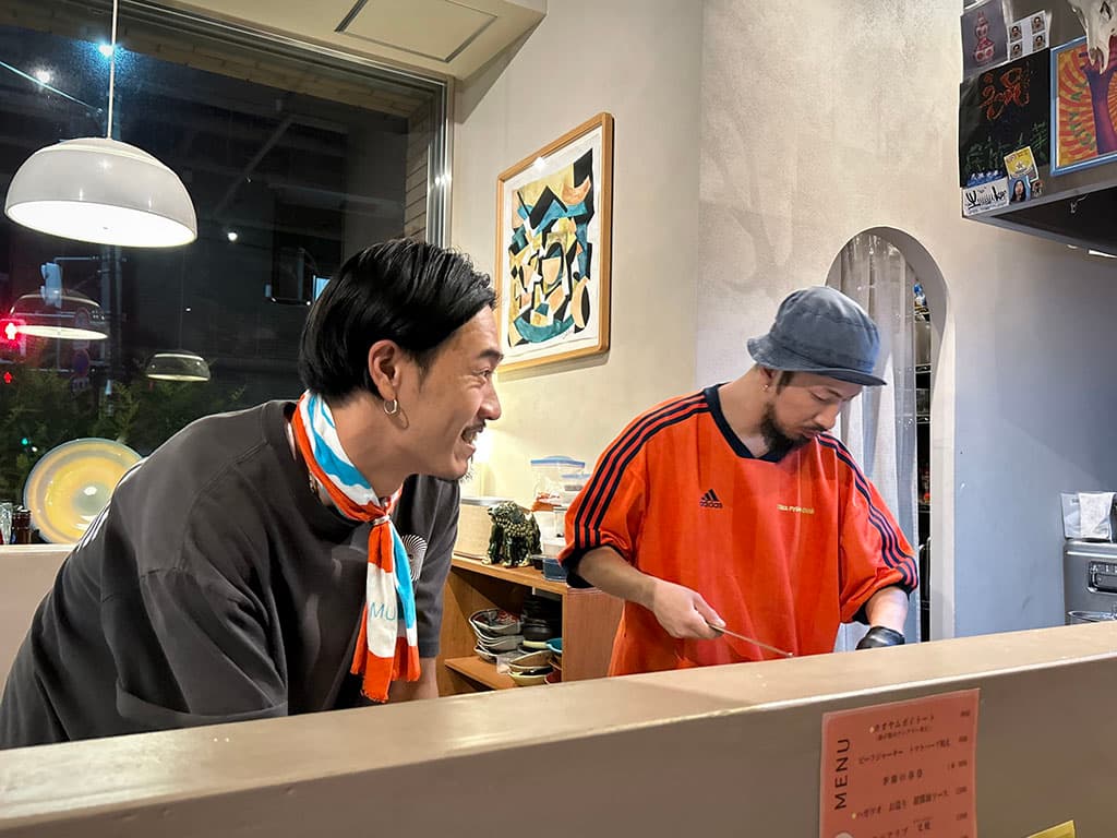 みんなのグルーヴがひとつの民族である、というミーニングは後付けだとユーヤさんは笑い、ユウスケさんは隣でヒゲをさわりながら頷いている。「お客さん同士の距離が縮まって、そのまま2軒目に行くことが結構な頻度であるんです」と嬉しそうで、2人にとって人をつなげることがやりがいになっていることが伝わってくる。