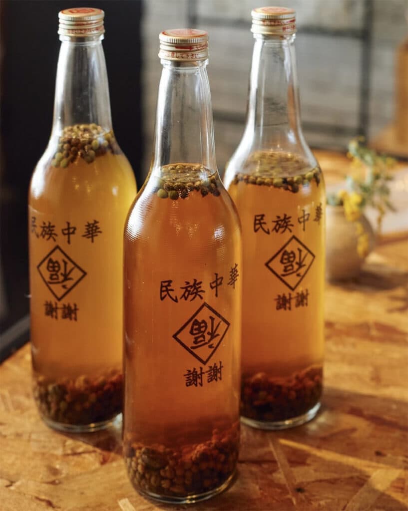 カルダモンやシナモンなどが入ったオリジナルのスパイス焼酎(民族中華提供)