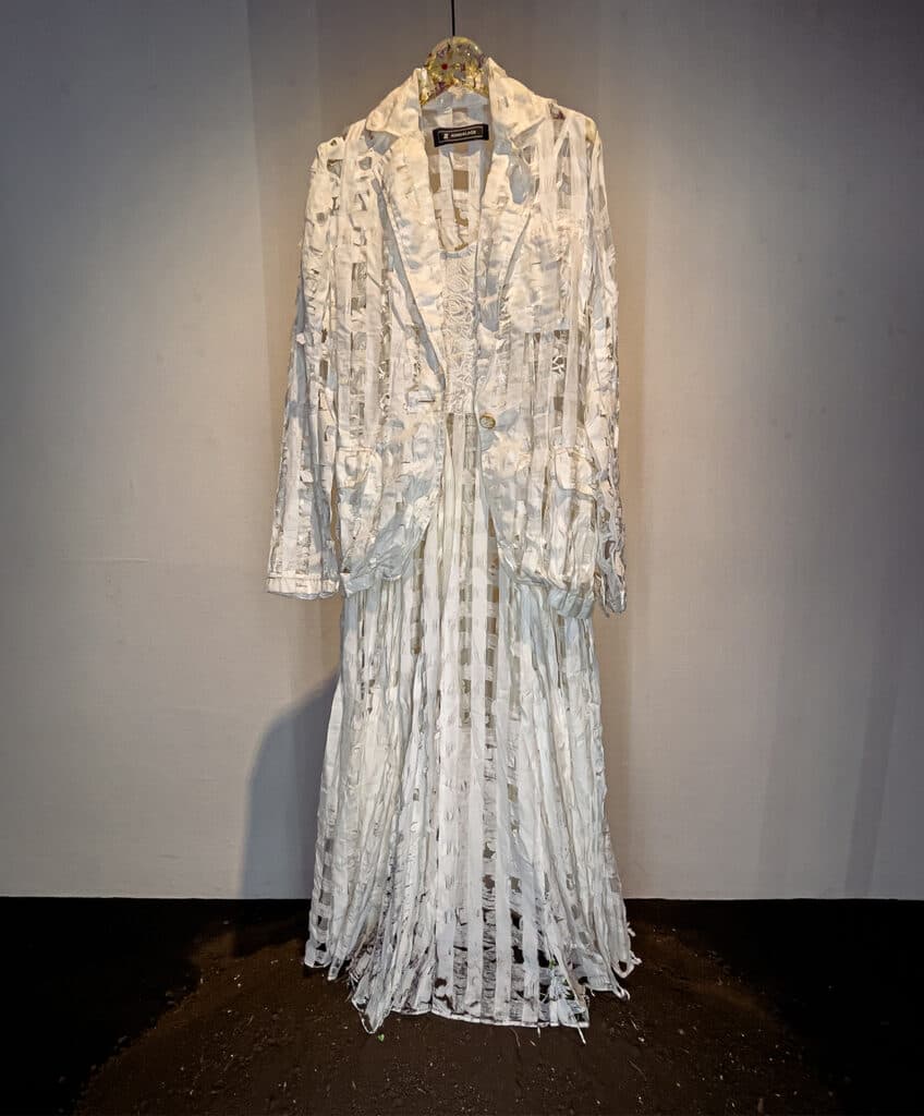 実はつい最近、虫とのコラボによるファッションを別の場所で見た。日本を代表する若手ファッションデザイナー、森永邦彦が率いるファッションブランド、ANREALAGEの歩みを振り返ったアンリアレイジ展覧会「AとZ」でのことだ。予備校時代にファッションの世界に魅せられ、世界的活躍をするに至った森永のデザイナー人生を振り返る回顧展。虫とのコラボをした作品は、2019年、ファッションブランド帝国、LVMHの「LVMHヤング ファッション デザイナー プライズ」のファイナリストに選ばれた際の作品として紹介されていた。