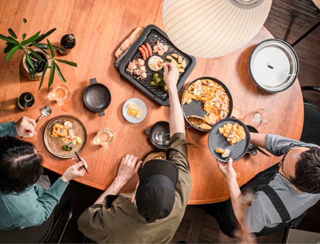 別売り品には、蒸し料理に便利な「スチームポット」と、グリル料理を楽しめる「グリル皿」を用意。スマホアプリ「キッチンポケット」で必要なものだけ本体に追加・ダウンロードできるため、自分のライフスタイルや料理スキルにあわせて一緒に成長できる家電というわけだ。