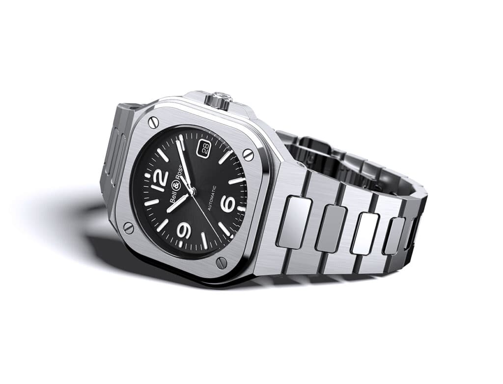 このデザインをさらに昇華させたのが、2019年秋に誕生した「BR 05」。ラウンド×スクエアのアイコニックな意匠を踏襲しつつも、ケース四隅のアールを強調し、ダイアルとケースのサイズバランスも変更。さらにケースと一体感のあるブレスレットを組み合わせたことで、航空計器にインスパイアされたそれまでのルックスから一転、モダンで都会的な雰囲気が漂うタイムピースとなった。しかもケースサイズは40mm。「BR 01」の46mmや「BR 03」の42mmよりもコンパクトになったことで手首への収まりは良くなり、装着時のバランスも向上している。