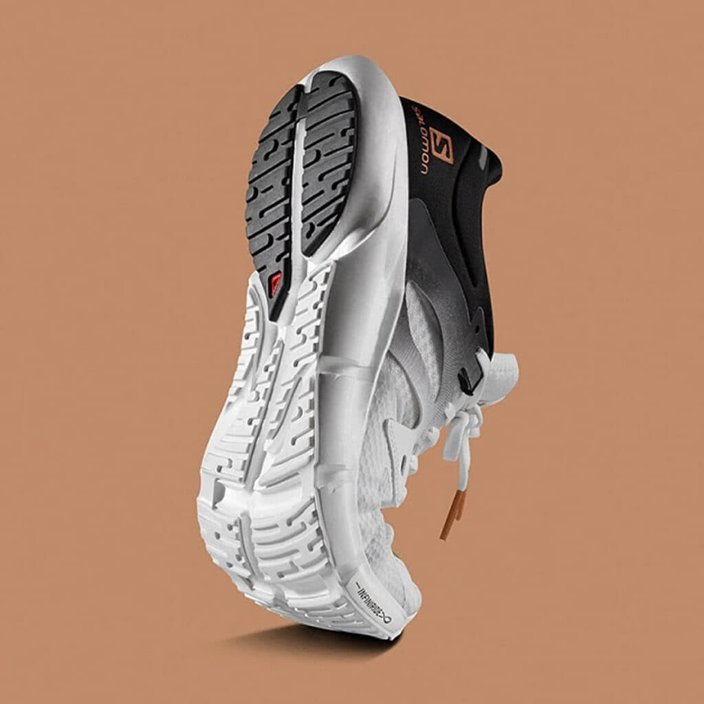 サロモンの調査によれば、膝のトラブルがランニングにおけるケガの42%を占めているそうで、多くのランナーが抱える頭痛のタネ(痛いのは膝だけれど)を解消することが製品開発の核とされた。
