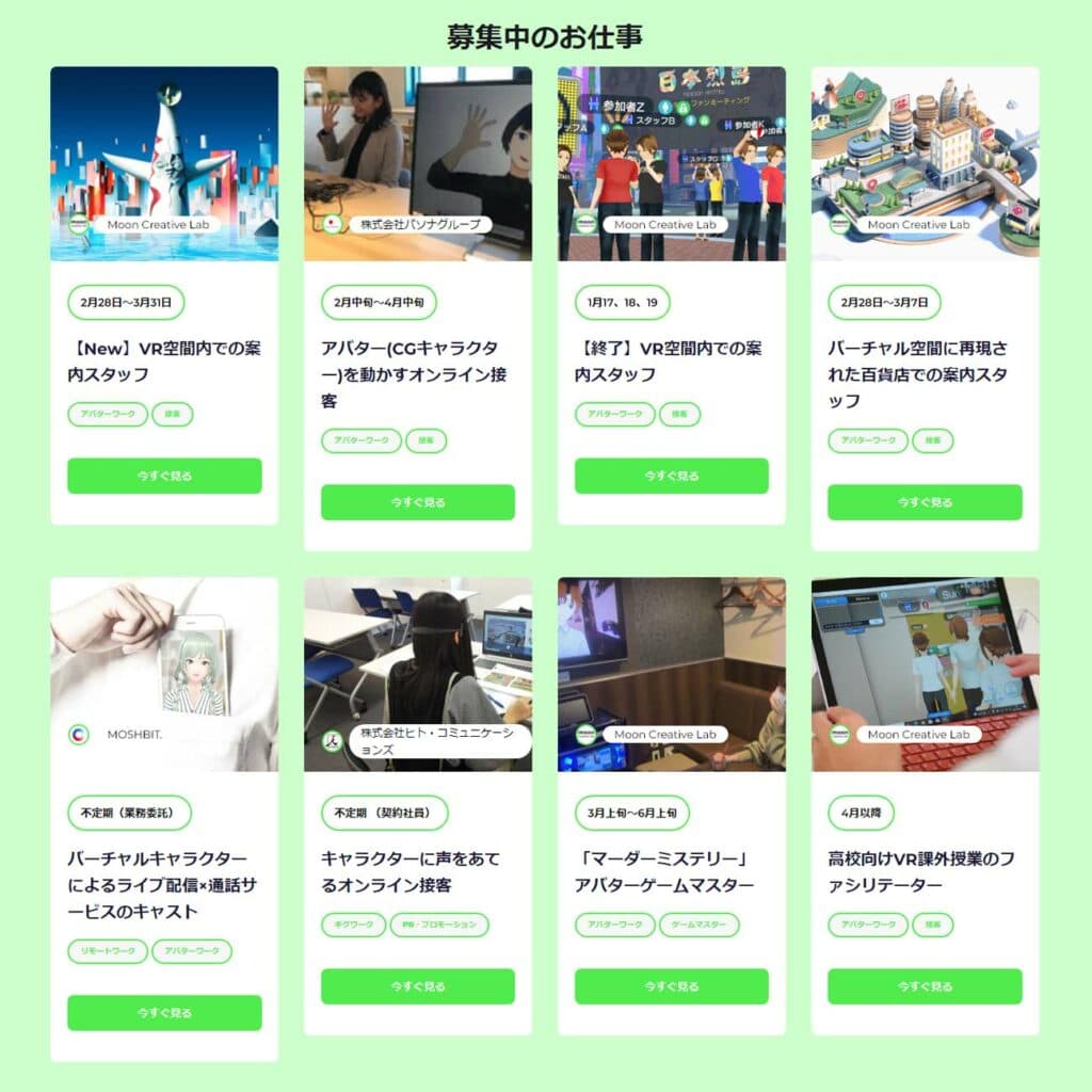 その時代はもうきています。メタバース空間で働いて稼げるという近未来感あるジョブマッチングサービス「メタジョブ!」がすでに存在しているのです。三井物産グループのMoon Creative Lab Inc.(ムーンクリエティブラボ)が運営する同サービスは、2021年10月21日よりVR技術やメタバースを活用した新たな事業に取り組む企業と、場所や見かけに縛られない新しい働き方を探す人をつなぐ同事業をリリースしました。