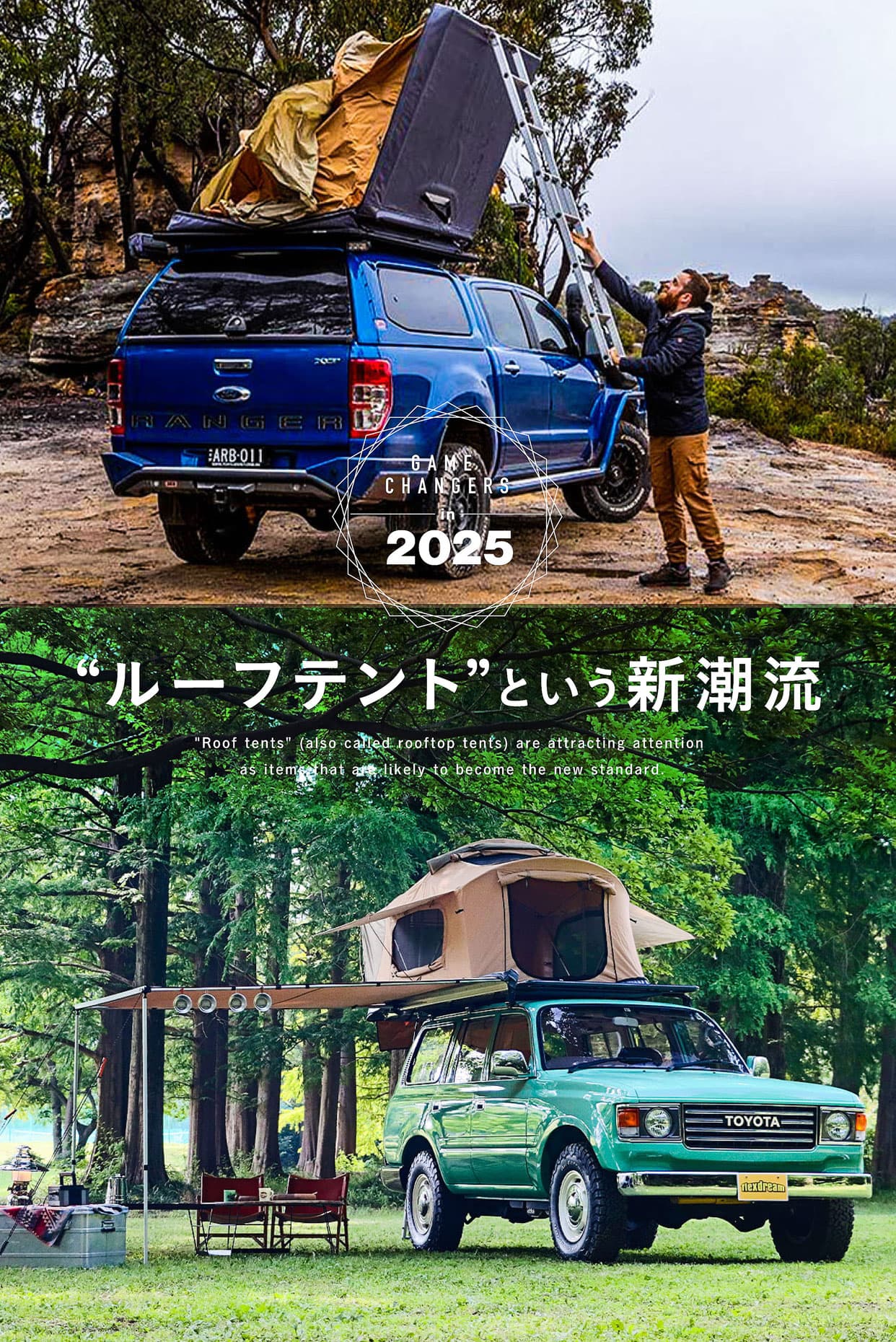 いまだに陰りが見えないキャンプブームですが、その潮流は目まぐるしく変化しています。やや過剰と思えるお洒落キャンプがインスタ発で過熱したかと思えば、その数年後には最小限のギアで自然との一体感を楽しむソロキャンプがブームになるなど、シーンは今も激しく揺れ動いております。そんななか、私が新たなスタンダードとなりそうなアイテムとして注目しているのが「ルーフテント」(ルーフトップテントともいう)です。