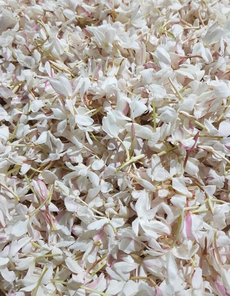 ジャスミンが選ばれた経緯として、先にも記載しましたがジャスミンは非常に人気のある香料で、1) 量の確保が可能な素材、2) アンフルラージュ法以外の抽出方法の精油は、アニマリックで、溶剤特有の香りも嗅げてしまうこともあり、使いづらいと感じることがあるため、より生花本来のフレッシュ感ある状態の精油を取得したいとの思い入れがありました。