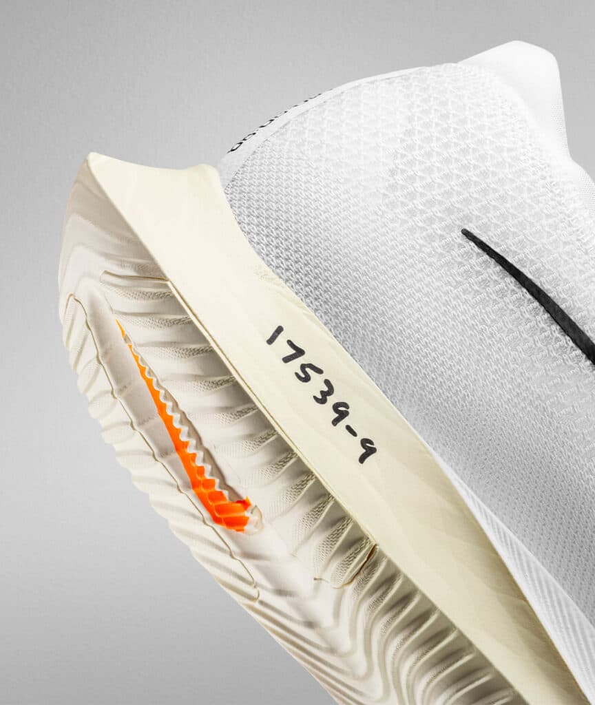 「フルレングスのプレートはもちろん、中足部から前足部までの長さのものなど、さまざまな長さ、素材のプレートをテストしました。適切な安定性を提供しながら、アスリートが望むクッション性、アグレッシブさ、接地感、エネルギーリターンを実現しようとした結果、プレートは中足部のみにして、前足部にズームエックス フォームをたくさん使うことになったのです」(エリオット・ヒース氏)