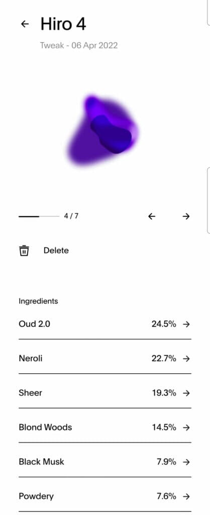 ファーストインスピレーションでしょうか? AI が正確なのでしょうか? 私も同様に最初の香りが一番しっくりきました。ですが、これを身に付けるかというと、そうではないので、4 つ目の香りの提案用に身に纏いたい香りに Tweak。Mekanik さんのアドバイスのもと、下記のように変更。