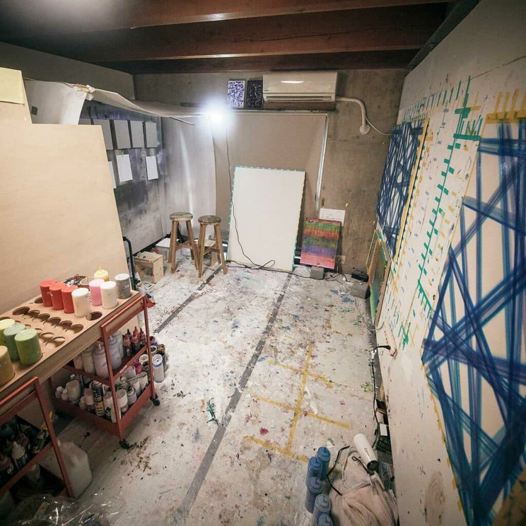 たくさんの画材や刷毛が等間隔にセットされた特製の道具などが置かれ、絵を描くためにDIYされたアトリエは、まるで秘密基地のよう。三浦さんはここで、朝9時頃から夜10時過ぎまで、丸一日過ごしながら制作に没頭する日々だという。大学院の頃から変わってないというが、ここへたどり着くまでには紆余曲折があった。