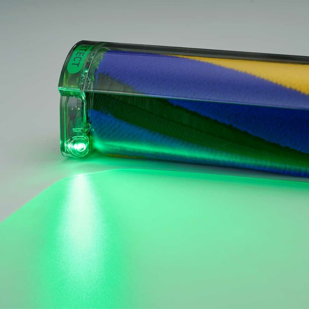 これにより、肉眼では見えないような微細な粒子の見逃しや、掃除の取り逃しを防げるようになりました。レーザー光にグリーンを採用したのは、人間の目が一番反応して見やすいからです。