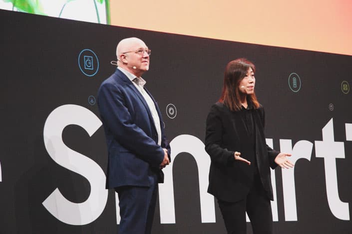 今回のIFAでは、SMAの住宅ソリューション、システム、デバイスを統括するヤン・ファン・ラエテム氏と、ABBのビルディング・ホームオートメーションシステムを統括するルーシー・ハン氏が壇上に上がった。
