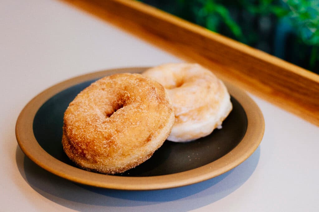 左からシナモンシュガー、シュガーグレーズのドーナツ