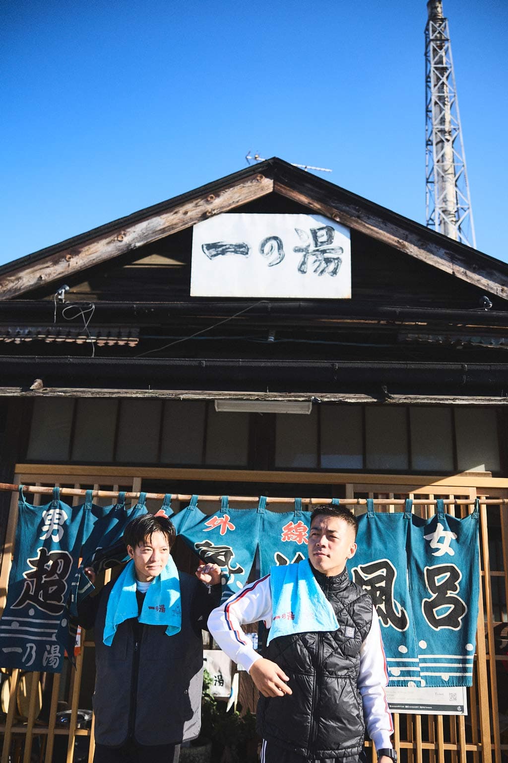 ここは桐生市の中心街にある『一の湯』。迎えてくれた女将が二人と親しげに話す様子からも、ここがどんぐりずの憩いの場であることが分かる。